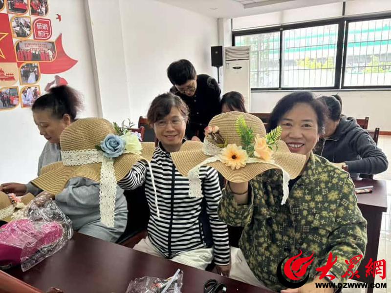 海泊河社区计生协会,组织会员手工diy花艺草帽,大家根据各自的喜好,搭配颜色、丝带及干花,运用独特创意,手工制作花艺草帽,大家边手工边唠家常,现场一片欢声笑语。不一会儿,普通的草帽在指尖变成了一件件艺术品。妇女们自豪地把花艺草帽戴在头上,美在心里。