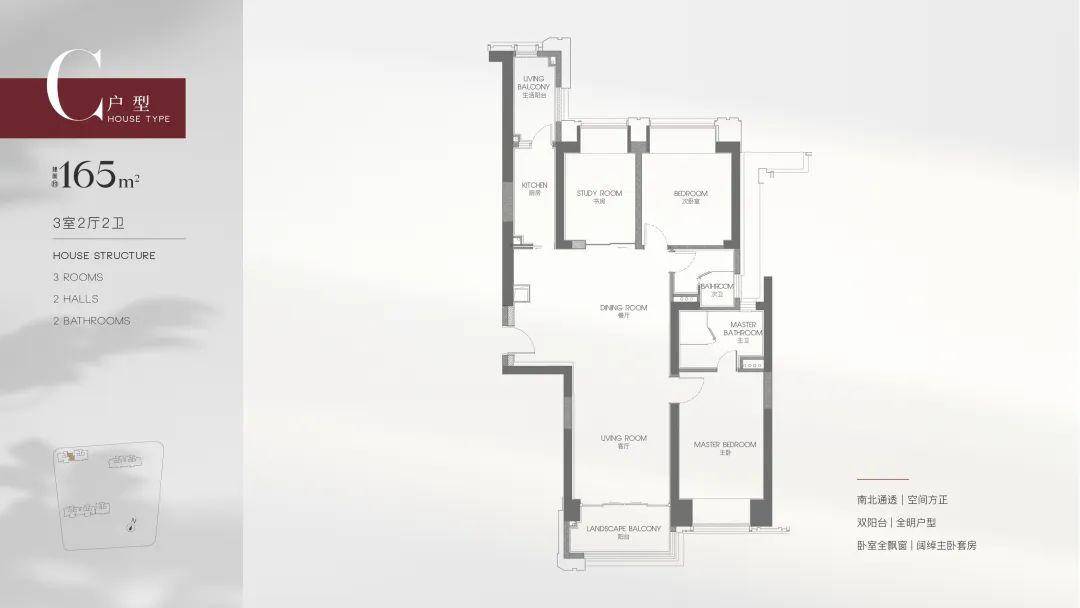 双阳台设计,南北采光更通透,隐私性更佳,非常适合三口之家或是年轻家庭居住,主打舒适度与功能性!