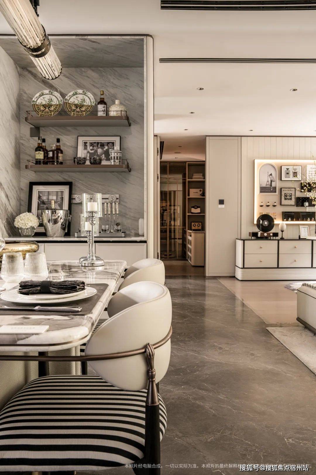 比如,项目大量使用造价昂贵的奢石艺术,用石材沉稳的气质打造更有格调的居住空间,归家门厅墙面由石材镶嵌意大利毕加索奢石,地面为大理石水刀海派拼花。