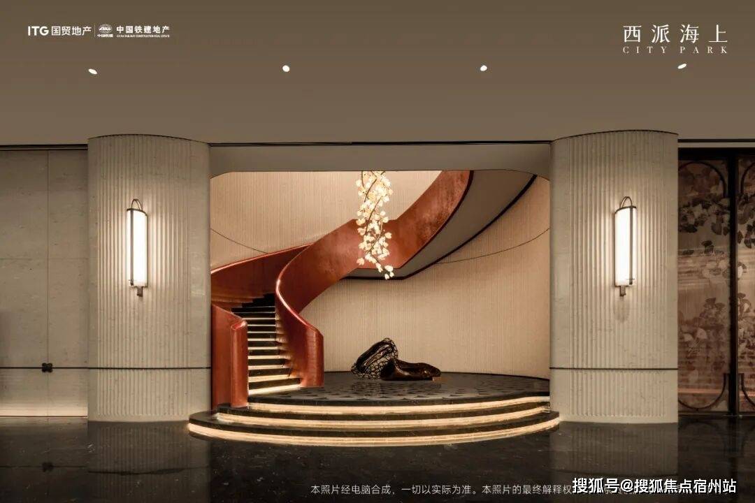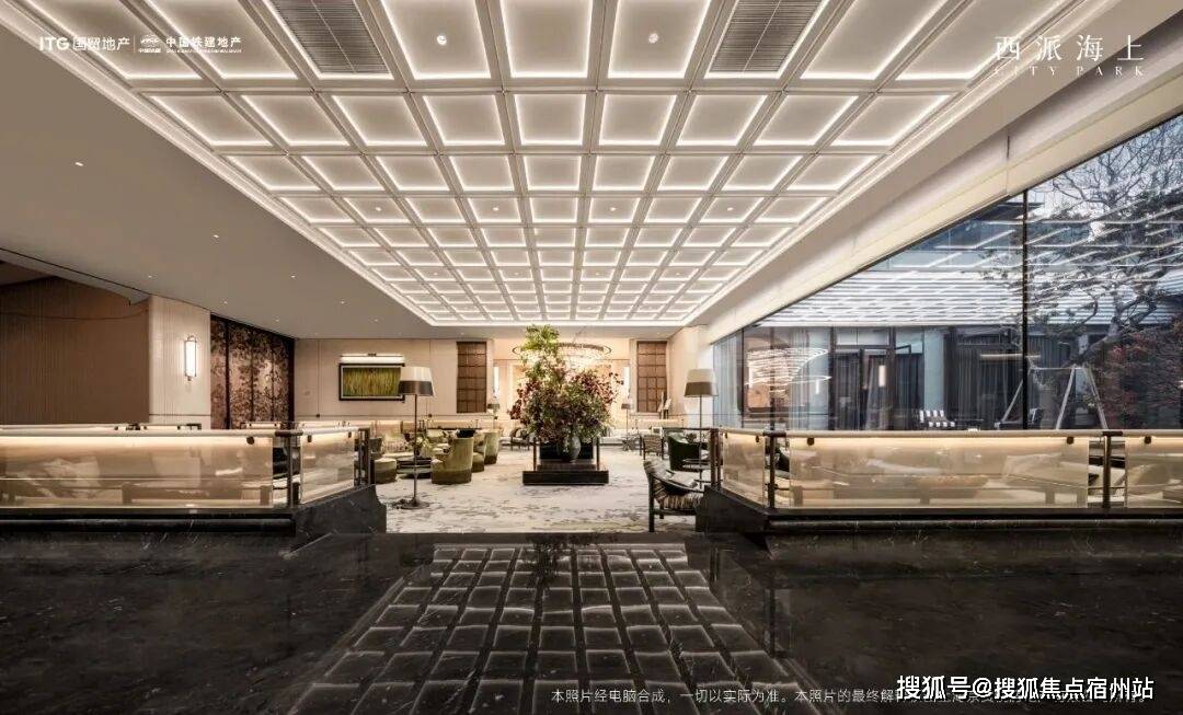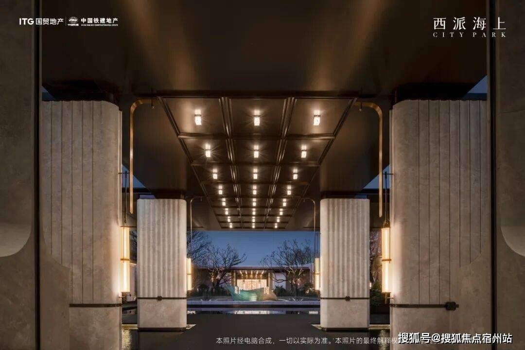 ☑️☑️中铁建西派海上售楼处电线㎡环岛式酒店落客区+约88m气派门头+鎏金吊顶,就像打开了一幅巨幅画卷般,让人充满了对于归家的向往。