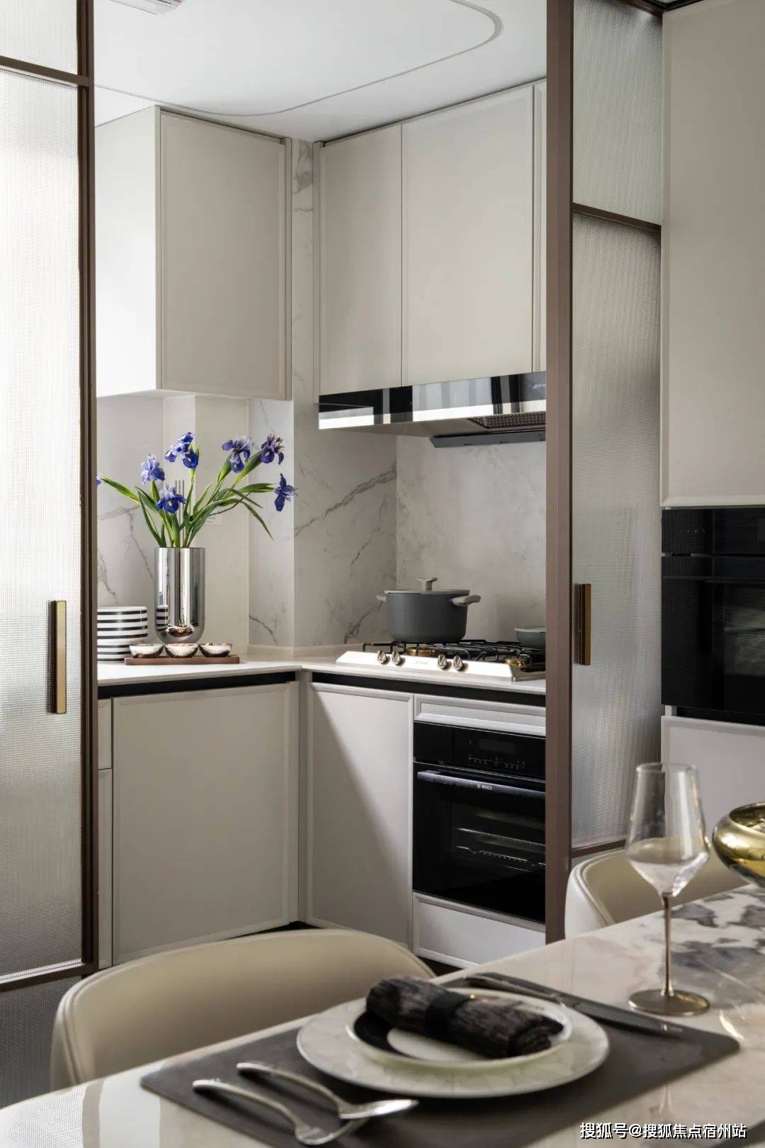又比如,不同于传统厨房设计,项目在厨房与客厅之间用吊轨海派金属玻璃移门隔开