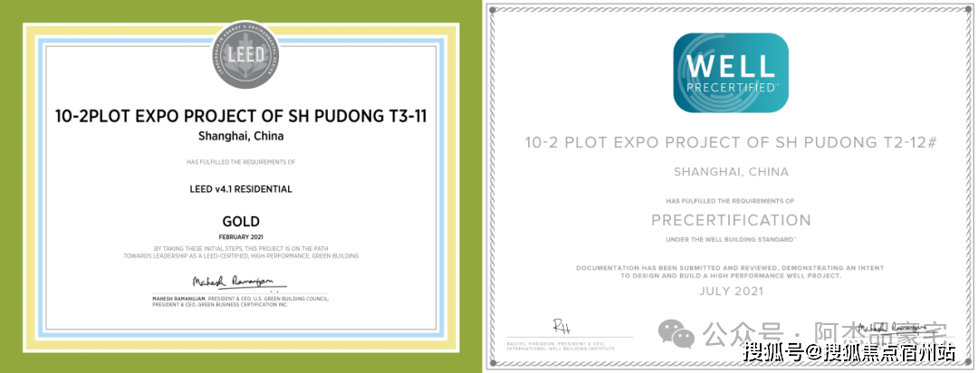 项目同时斩获亚洲首个住宅项目LEED v4.1金级预认证(10#、11#、12#)与美国WELL金级(全球首个关注人体健康的建筑认证)预认证,要知道,能够同时获这两项认证的建筑在“节能”和“健康”这两大主题上都具有极高标准,可能很多人不知道这认证的含金量,随便举几个有单项认证的例子: