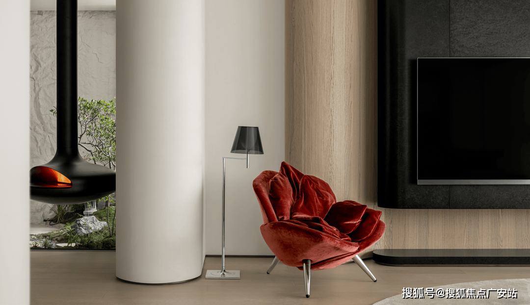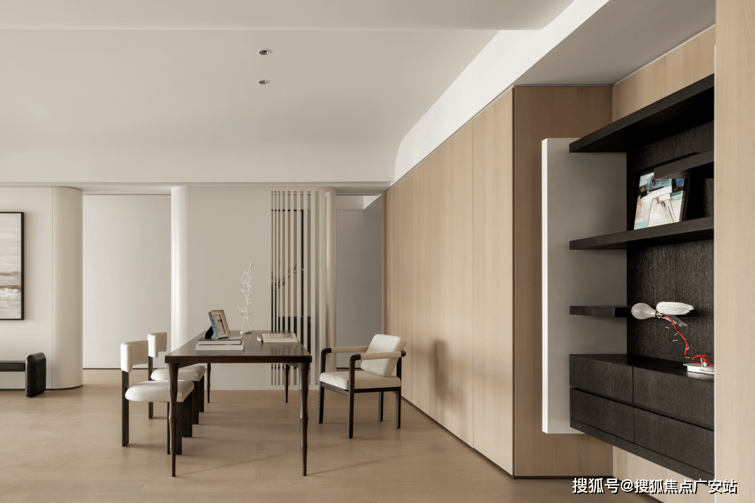 凭借温柔的弧形,优化了原始梁柱的琐碎感和锐利感,与木元素或纯色调糅合,让光影自由地流动。