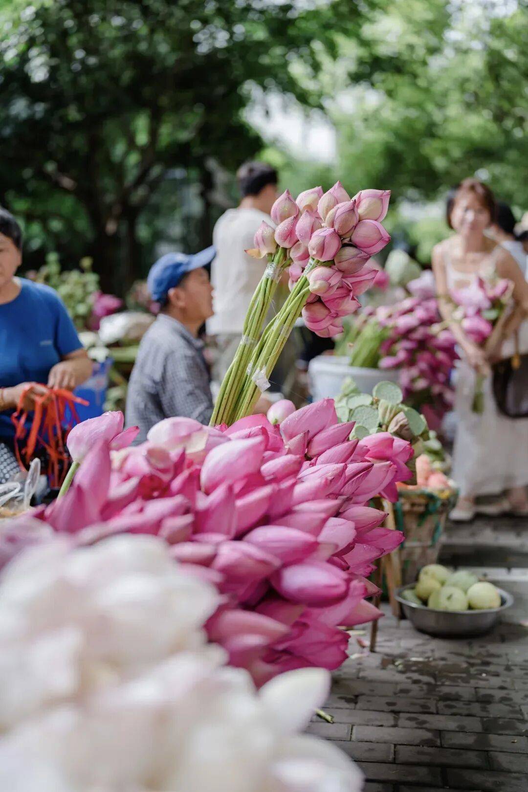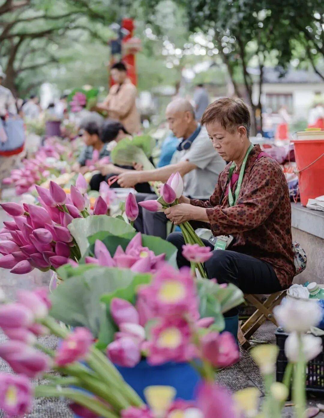 苏州以“荷花”为连接点,上连太湖种植生态链,下接江南“可采莲”民俗文化,形成“生态供给—文化转化—消费体验”闭环。市集不仅销售荷花、莲蓬,更通过花艺展示与文化科普,传递“种荷、赏荷、爱荷”传统,同时整合非遗技艺,开发荷花灯、荷花酥等主题产品,使文化以可感可消费的形式融入现代生活,提升了旅游场景的苏式美学质感。