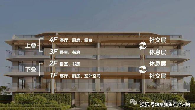 :创新采用 “上叠北入户、下叠南入户” 的设计,让上下叠均能独立入户并自带花园,最大限度减少户间干扰,保障居住私密性。