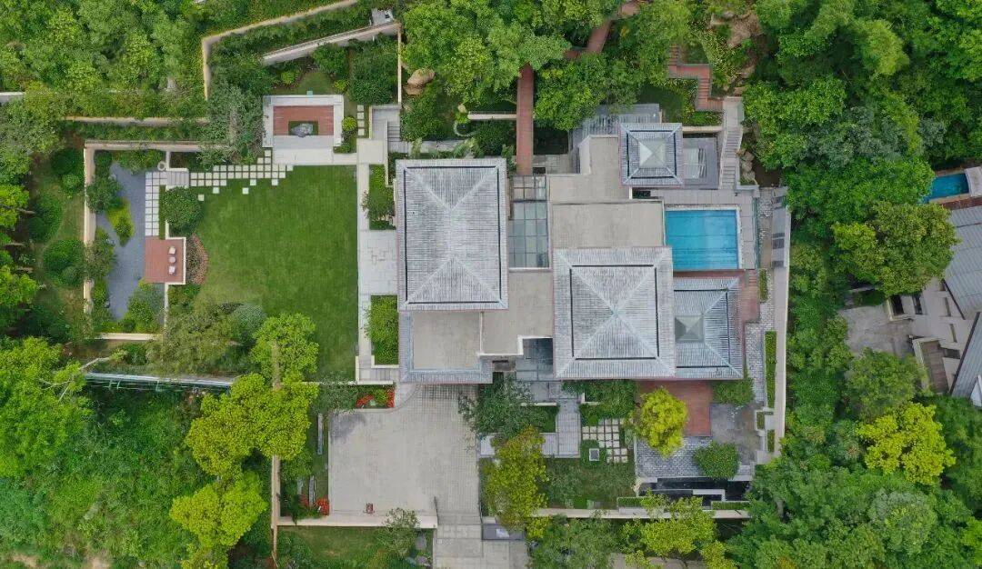 S22「叠翠阁」由全球顶级设计事务所美国NBBJ操刀设计,总建面约为951㎡,相比以往的大面积独栋,S22「叠翠阁」位置更佳,一脉连着白云山,一面连着天鹅湖。首层的庭院打造了泳池区、品茗区、观湖区和自然博览区四大主题区域,景观设计独具匠心,建筑和自然和谐共生。