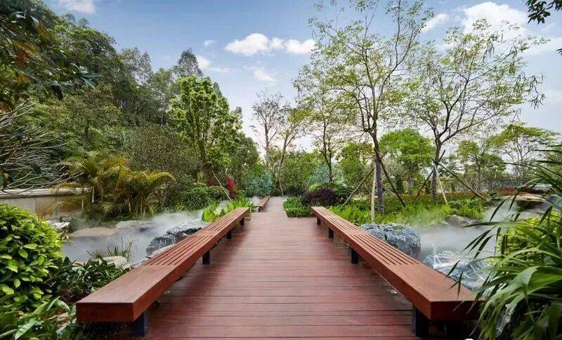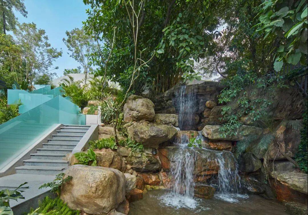 S2「盈水阁」庭院以度假酒店安宁、平静、私密的艺术景观创作为蓝本,结合白云山原始自然风光,采用现代风格的设计手法,注重生态,适度整改,在不破坏整体自然环境下,进行多维度的景观营造;打造出独一无二的“盈水阁六景”;层层递进,移步换景,营造出自然、隐奢的居住体验;六大主题花园,移步换景,让归家充满浓浓的仪式感,享受一种真正的城市秘境庄园生活。