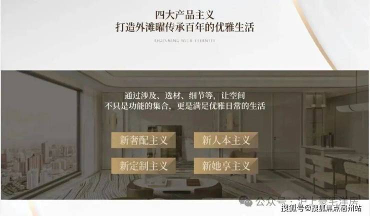 项目提出“新奢配主义、新人本主义、新定制主义、新她享主义”四大产品主义,从空间布局、选材工艺、交付细节到生活方式关怀,系统梳理了一套新时代豪宅标准。通过这四大“主义”,保利•外滩曜希望做到的,是让空间不只是功能的集合,而是真正承载一座城市新一代风貌家庭的优雅日常!