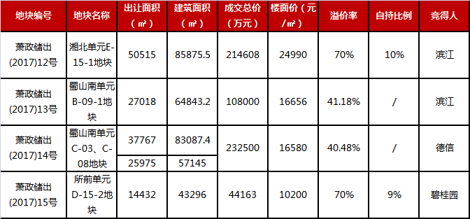 此后,滨江再次发力,夺下蜀山南单元小体量商住地,成交总价108000万元,楼面价16656元/平方米。