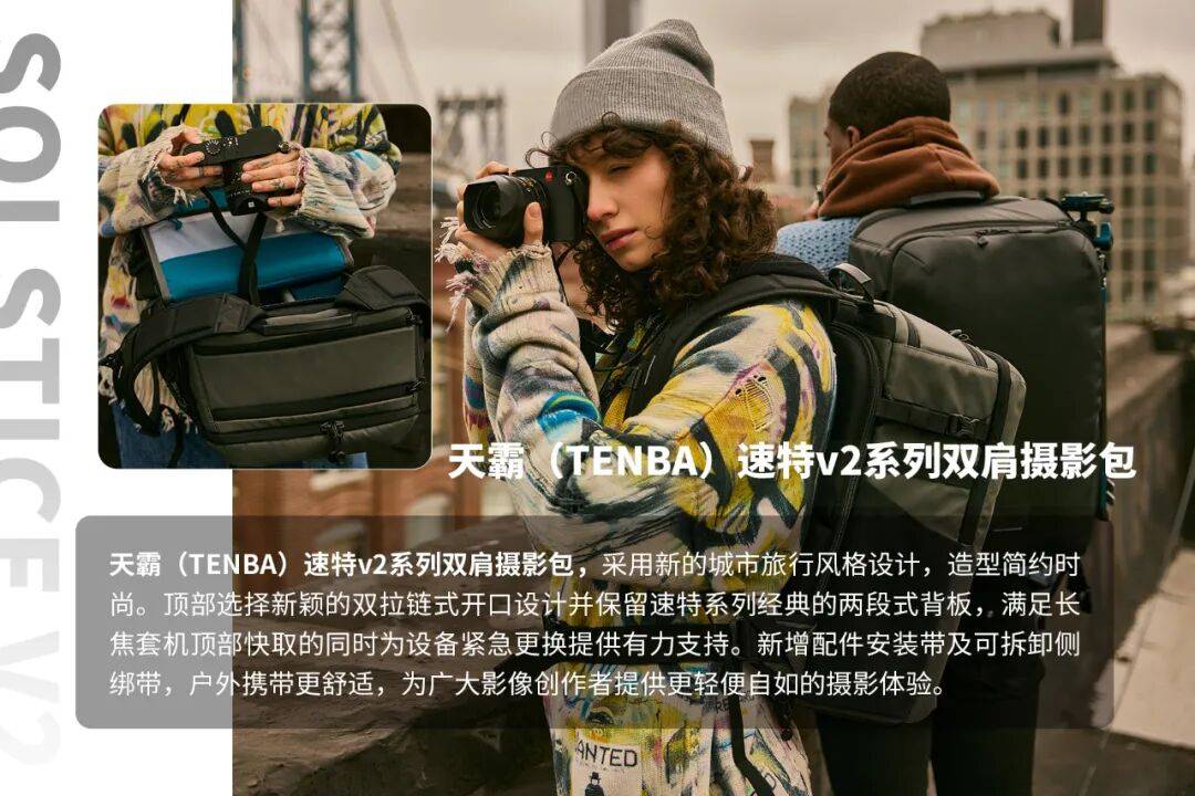 天霸(TENBA)速特v2系列双肩摄影包,采用新的城市旅行风格设计,造型简约时尚。顶部选择新颖的双拉链式开口设计并保留速特系列经典的两段式背板,满足长焦套机顶部快取的同时为设备紧急更换提供有力支持。新增配件安装带及可拆卸侧绑带,户外携带更舒适,为广大影像创作者提供更轻便自如的摄影体验。