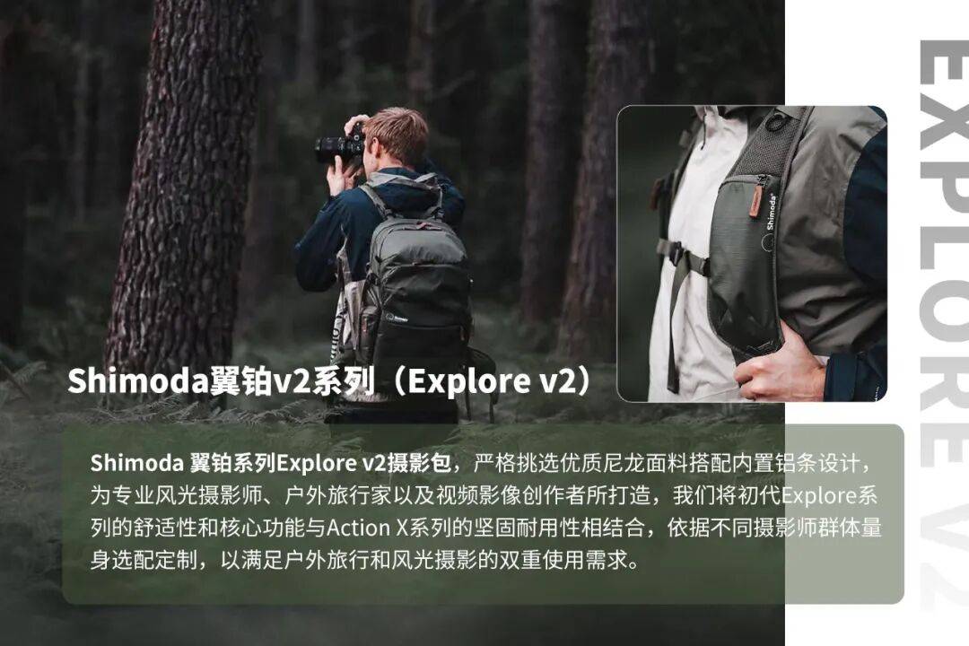 Shimoda Explore v2旅行户外摄影包,为专业风光摄影师、户外旅行家及视频影像创作者所打造,我们将初代Explore系列的舒适性和核心功能与Action X系列的坚固耐用性相结合,依据不同摄影师群体量身定制,以满足户外旅行和风光摄影的双重使用需求。